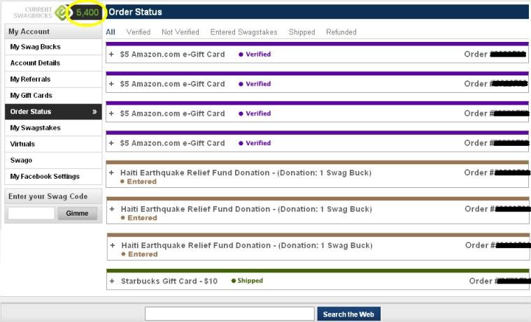 Notice how Swagbucks is a great way to donate to charity (I donated to Haiti, shown above).